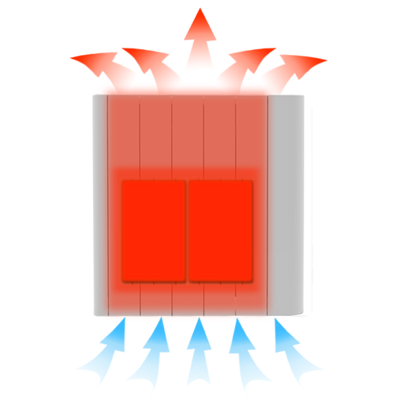 De gietaluminium behuizing biedt unieke voordelen: elke eenheid vormt een onafhankelijk convectiekanaal dat gelijkmatig wordt verwarmd, wat een optimaal convectie-effect oplevert en de thermische prestaties van de radiator aanzienlijk verhoogt. Bij het opwarmen van de keramische platen blijft de oppervlaktetemperatuur stabiel en gelijkmatig verdeeld. Het magnesiumoxide in het warmtekerndeel beschikt over een uitstekende warmteopslagcapaciteit, waardoor de warmte-inertie behouden blijft, er continu warmte kan worden afgegeven en de energie-efficiëntie hoog blijft. Dankzij deze eigenschappen zijn de keramische aluminium radiatoren met thermische traagheid van Batirad-s een professionele en kostenefficiënte verwarmingsoplossing.